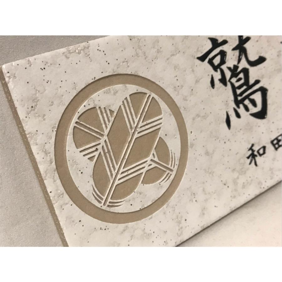 家紋デザイン 0x100角 長方形タイル表札 白ボタ デザイン表札 送料無料 おしゃれ 追加マグネット可 安価 戸建て マンション用 風水 長方形